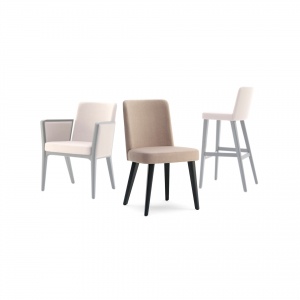 Exklusives Stuhlmodel mit einem zurück gesetztem Basisgestell aus Buchenholz, dessen Verbindungen verzapft, gedübelt und verleimt sind. Das aufgesetzte ca.10 cm starke Sitzpolster wird nach Hauskollektion gepolstert, ebenso die im Rücken ergonomisch geformte Rücken ...Weiterlesen