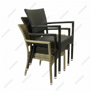 Stapelbarer Sessel mit robustem Kunststoff-Flach-Geflecht in 7 Farben erhältlich.