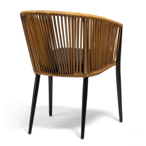 Runder Sessel mit strapazierfähigem PE-Band-Geflecht in der Farbe Lederlook.