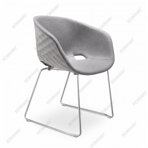 Stapelbarer Polypropylen Schalensessel mit einem Kufen-Stahlgestell pulverbeschichtet.