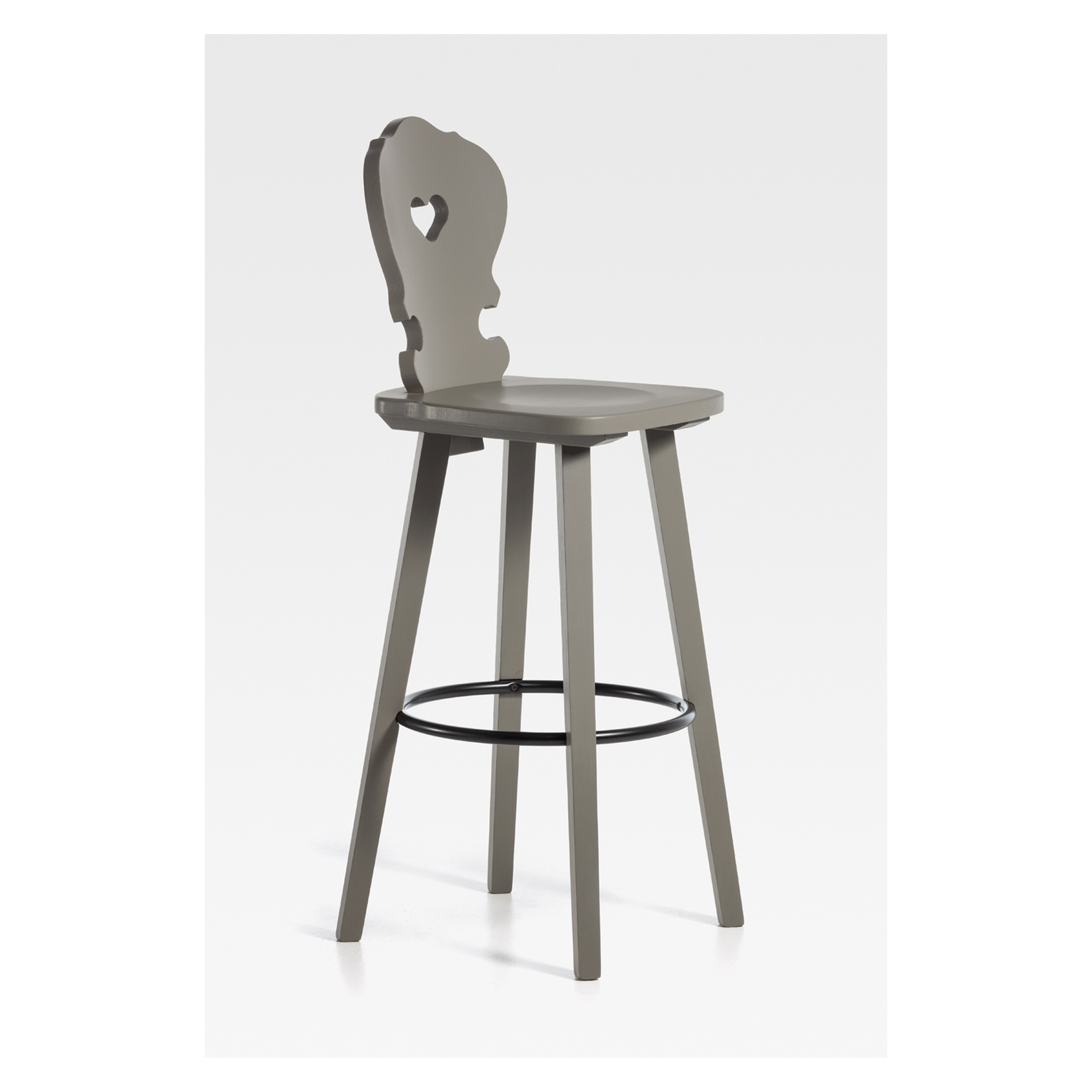 Klassischer Barhocker aus Eschenholz, ungepolstert, furnierte Sitzfläche mit Wabenkern,  traditionell gefertigte Rückenlehne und 8-kantige Stuhlbeine, farbig lackiert nach Hauskollektion (10 Farben),  inkl. abriebfeste PVC Bodengleiter.