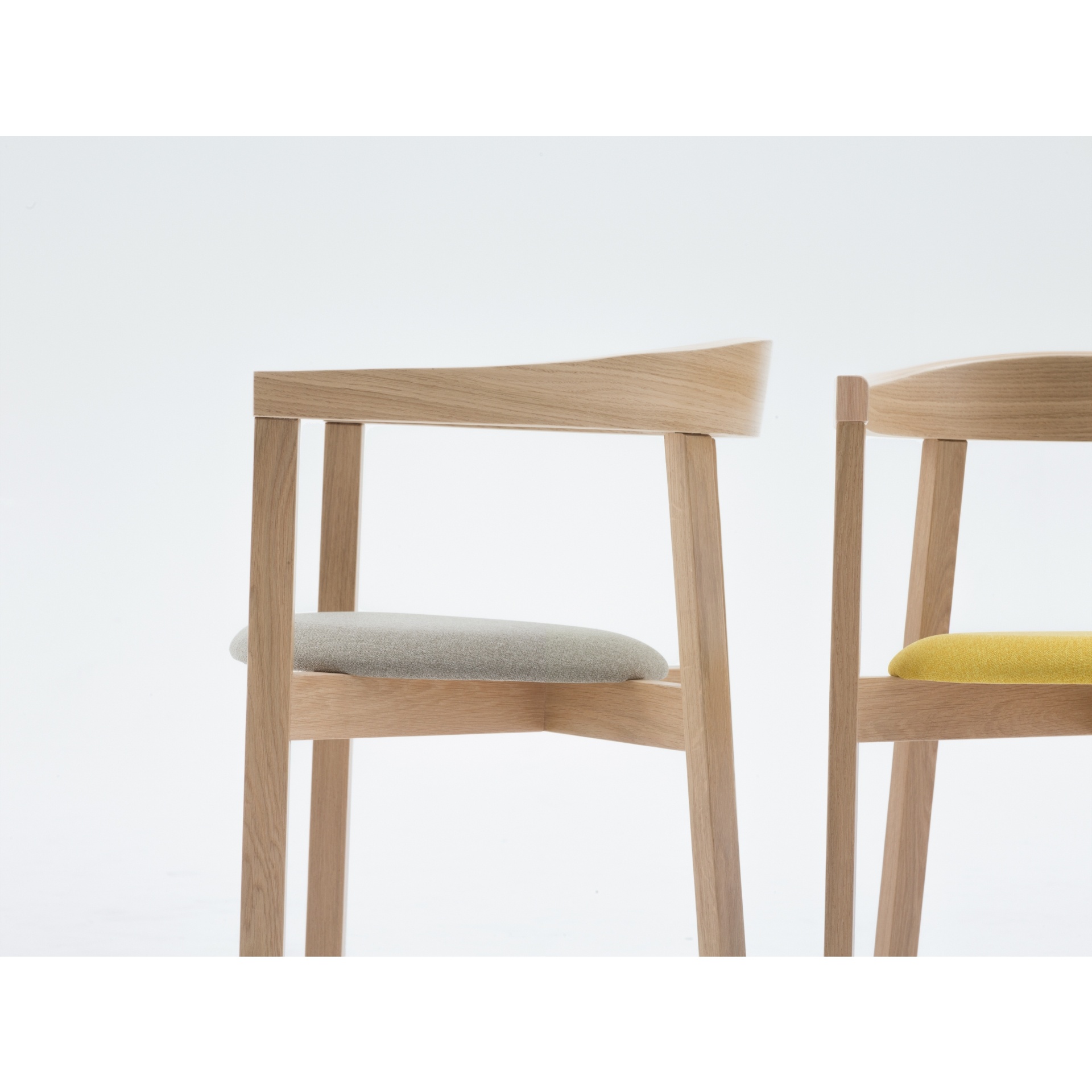 Minimalistisches Modell mit einer starken Persönlichkeit und frischer Form. Die Kreuzkonstruktion und zum Hufeisen geformte Rückenlehne umarmt den Sitzenden. Das Schmuckstück der Kollektion ist der Sessel, erhältlich sind auch Stühle und Hocker. Auf Wunsch sind die Si ...Weiterlesen