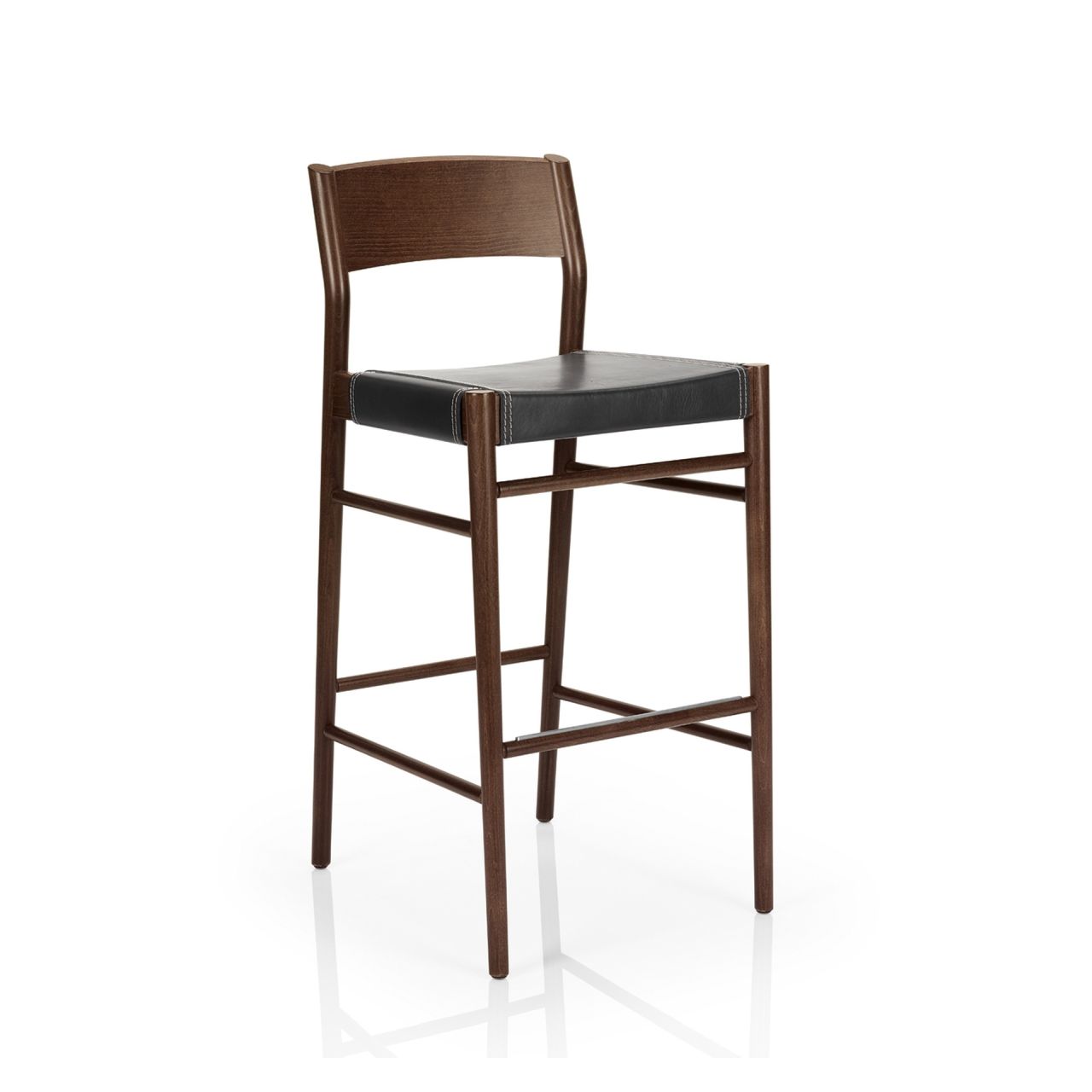 LEONIE Barhocker , Sitzfläche mit Echleder umspannt