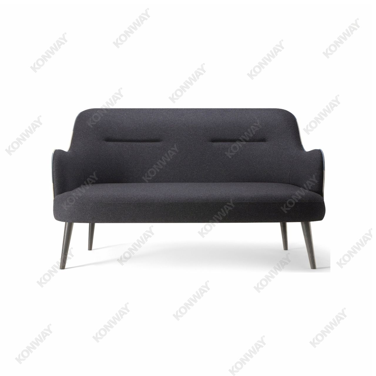 Modernes 2er-Sofa mit einem Stahlrahmen als Basis, massive Eschenholzbeine mit innenliegendem Stahlrohr, gebeizt und lackiert nach Hauskollektion.