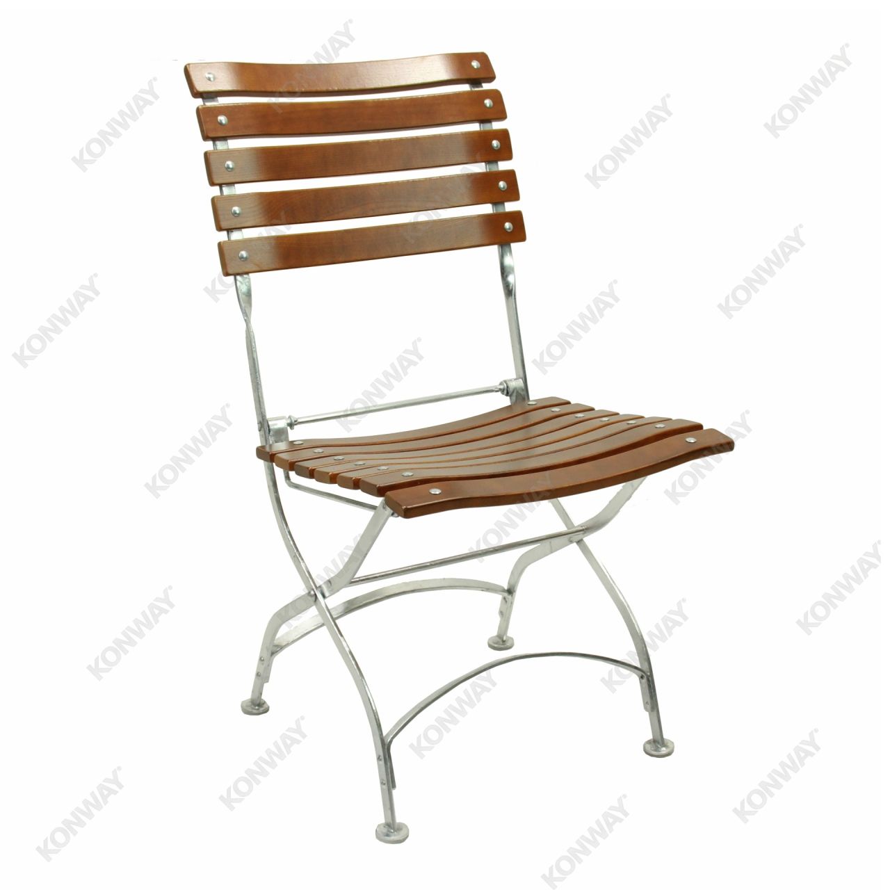 Hochwertiger klappbarer Biergarten-Stuhl mit 7 gebogenen formschönen Sitzlatten und 5 gebogenen Rückenlatten. Das sorgfältig abgetrocknete Holz (Güteklasse A) ist europäisches Hartholz Esche und ist 3-Fach mit lebensmittelechtem Lack in drei möglichen Farbtönen (Kirsche, Wallnuss, Kastanie) lackiert. Alle Schrauben sind verzinkt und die Leisten sind durchgehend verschraubt.