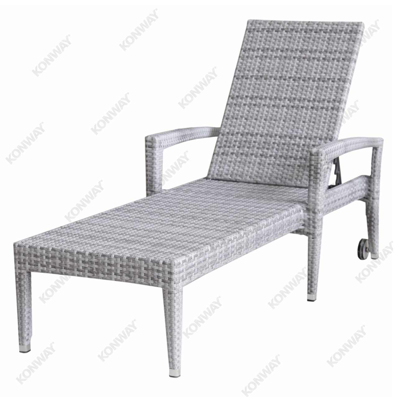 Exclusive Liege mit Rollen und klappbarem Rückenteil aus robustem Kunststoff-Flach-Geflecht in 7 Farben erhältlich. Hochwertiges Gestell aus rostfreiem Aluminium. Wetterfest und UV-beständig. Ohne Polsterauflage.