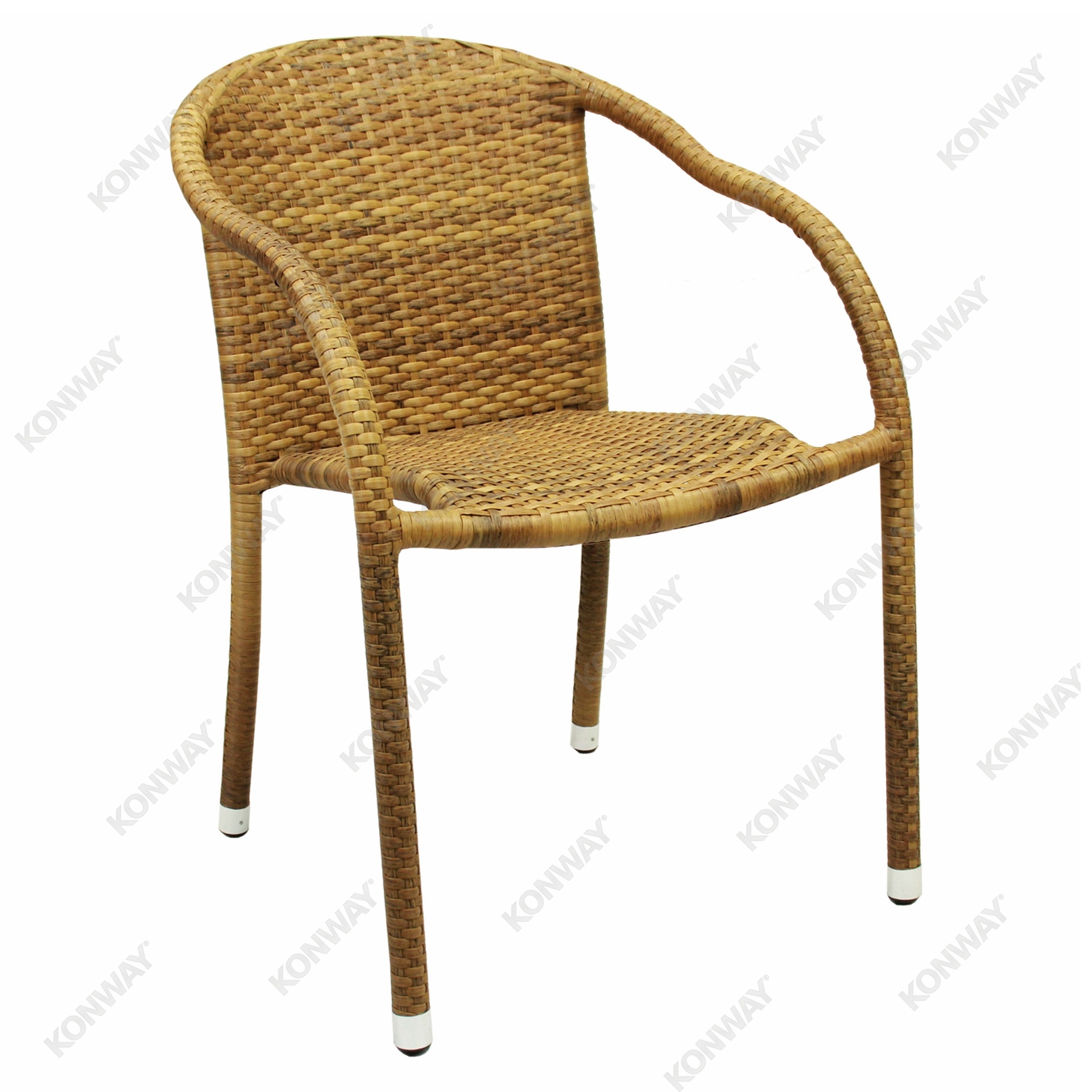 Stapelsessel mit runder Lehne aus pflegeleichtem und strapazierfähigem Kunstfasergeflecht. Mit Aluminiumgestell
