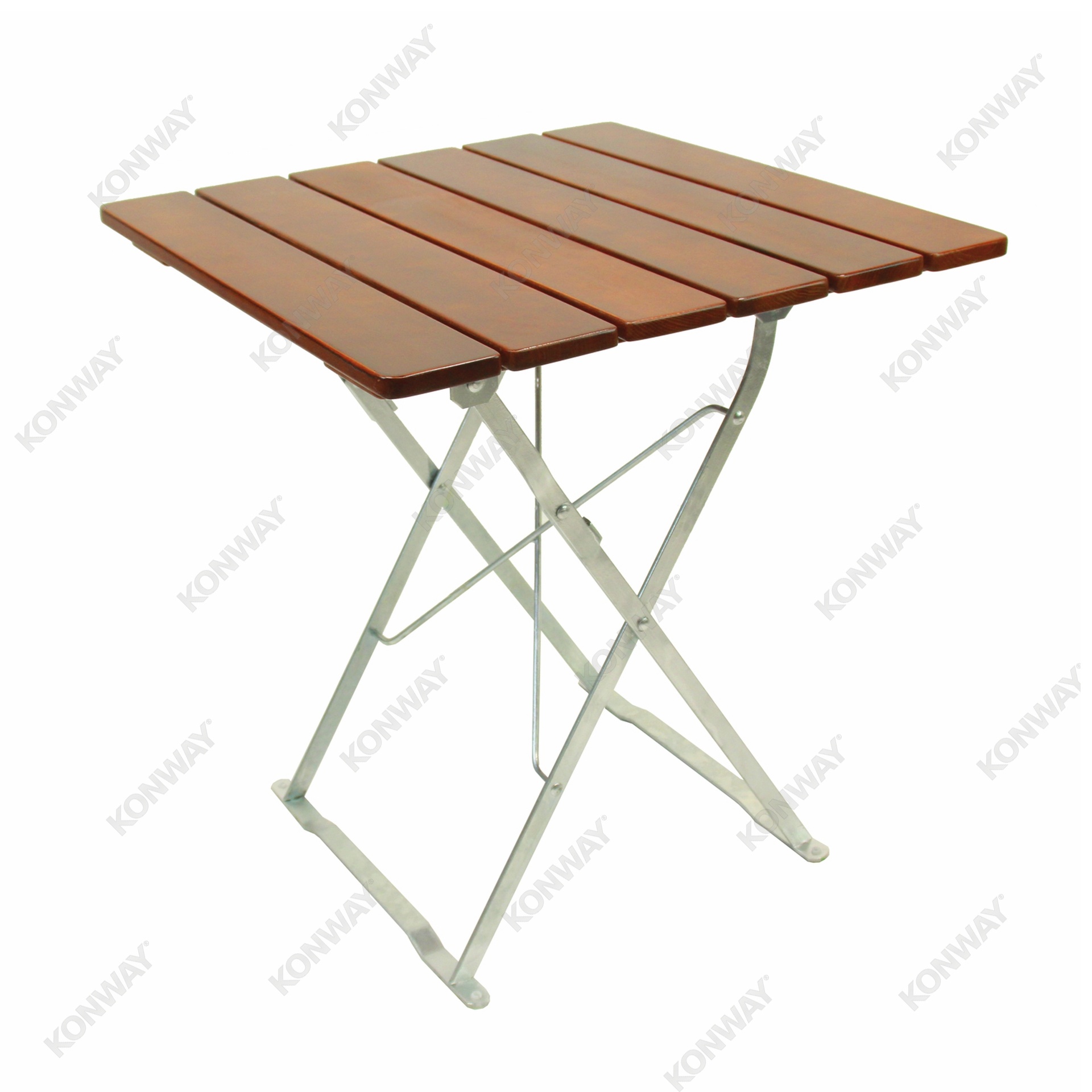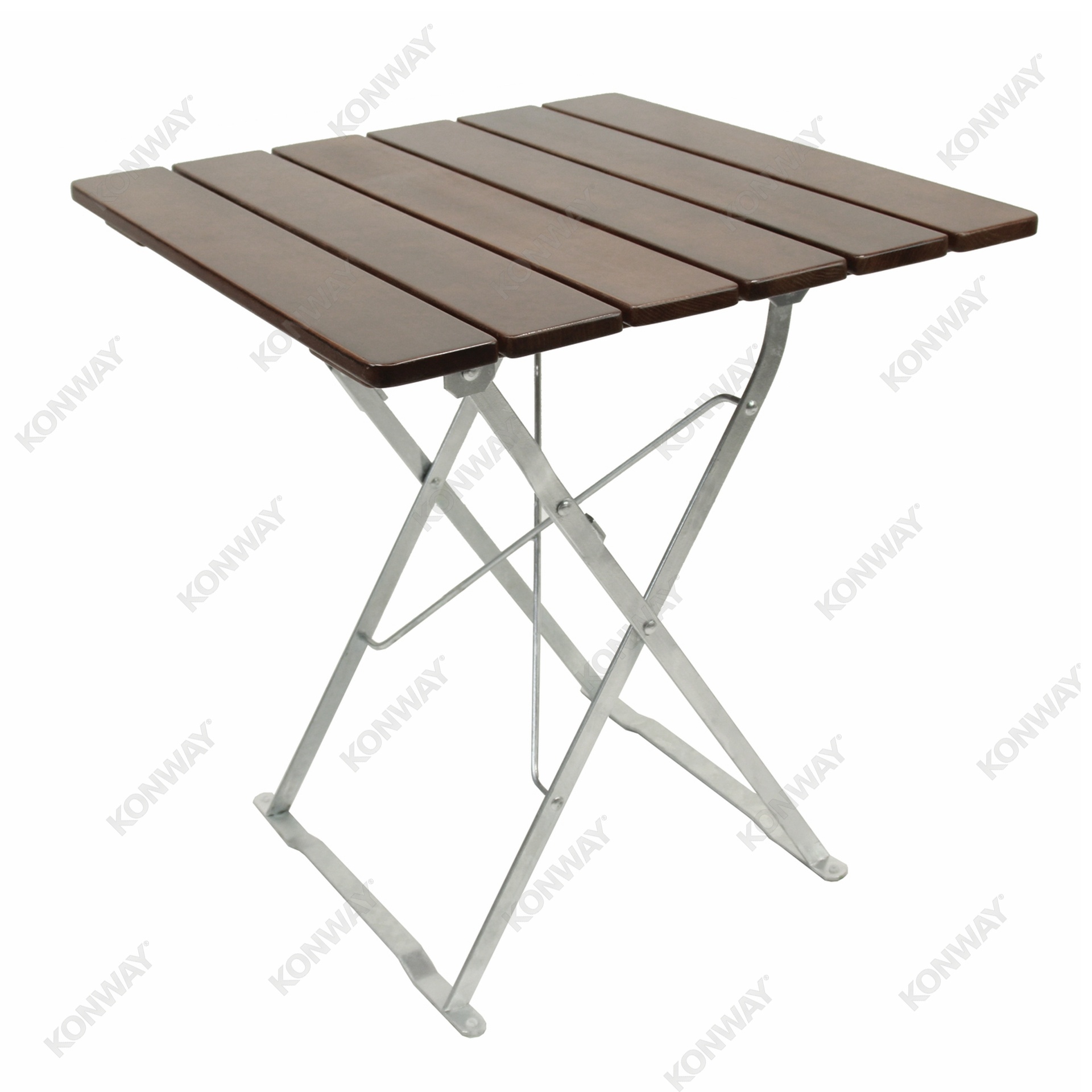 Hochwertiger klappbarer Biergarten-Tisch mit formschönen Tischleisten. Das sorgfältig abgetrocknete Holz (Güteklasse A) ist europäisches Hartholz Esche und ist 3-Fach mit lebensmittelechtem Lack in drei möglichen Farbtönen (Kirsche, Wallnuss, Kastanie) lackiert. Alle Spax-Schrauben sind verzinkt.
