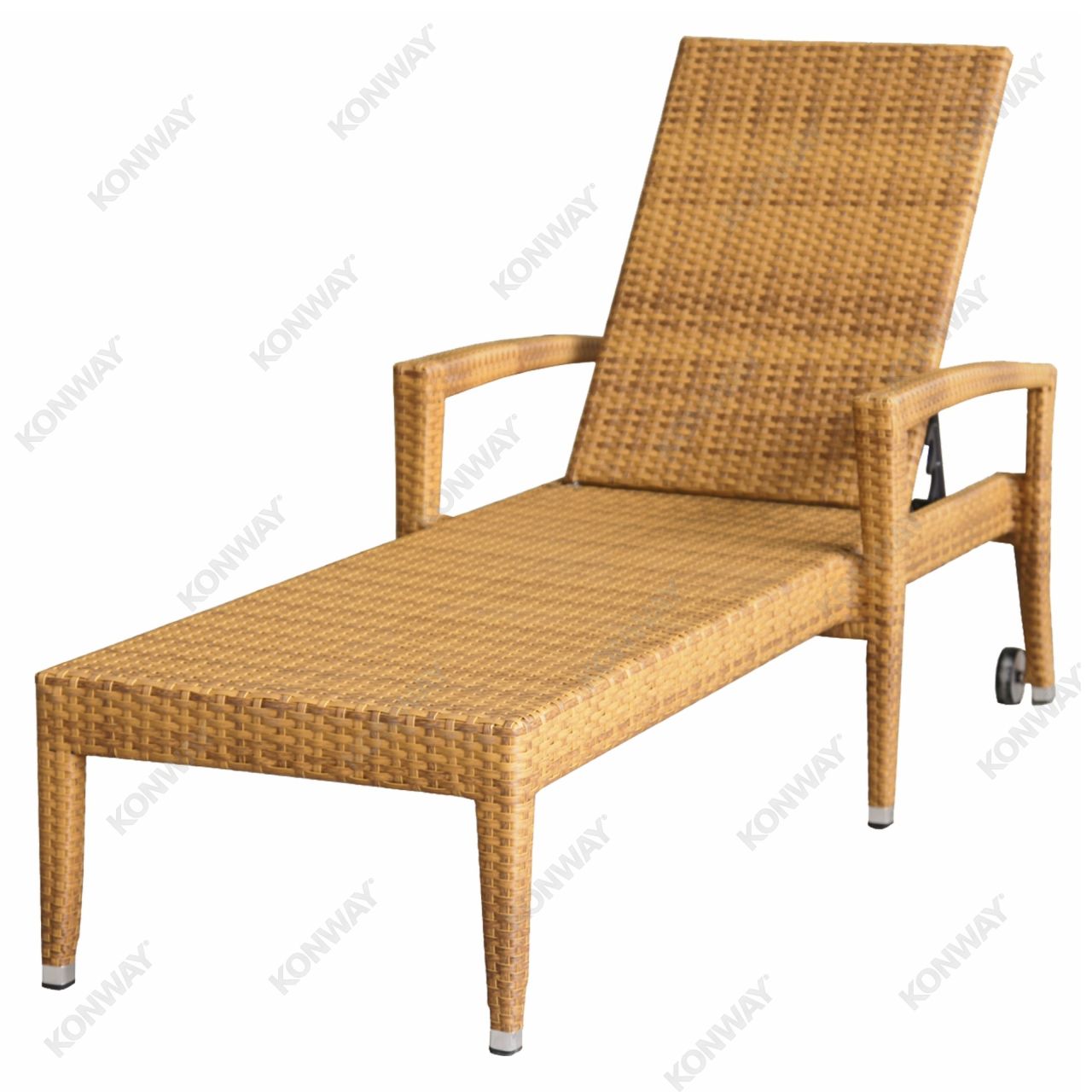 Exclusive Liege mit Rollen und klappbarem Rückenteil aus robustem Kunststoff-Flach-Geflecht in 7 Farben erhältlich. Hochwertiges Gestell aus rostfreiem Aluminium. Wetterfest und UV-beständig. Ohne Polsterauflage.