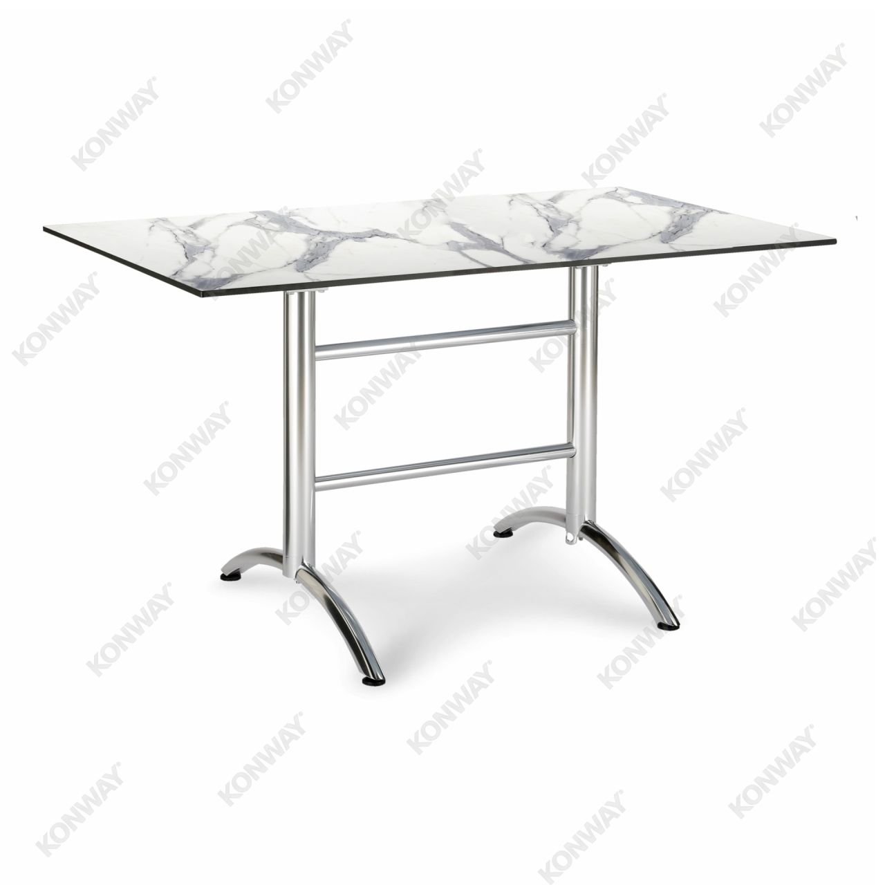 Tisch mit HPL-Tischplatte im Dekor MARMOR ist äußerst robust und kratzfest.